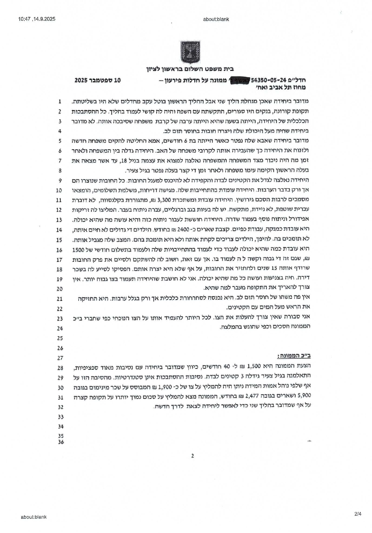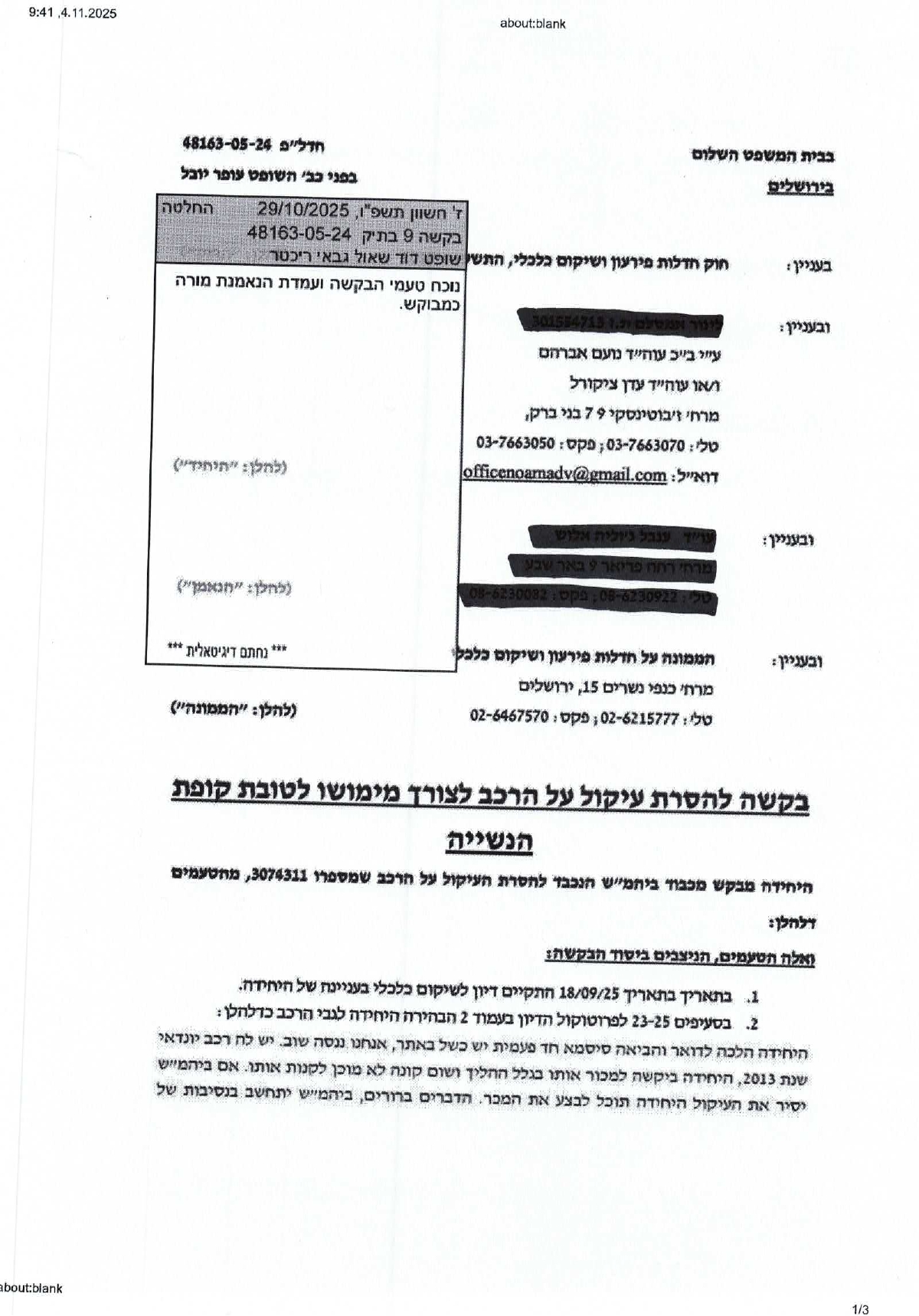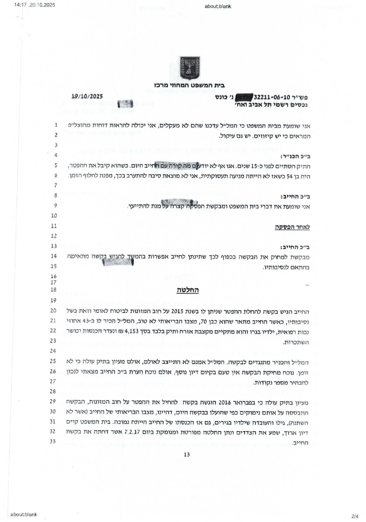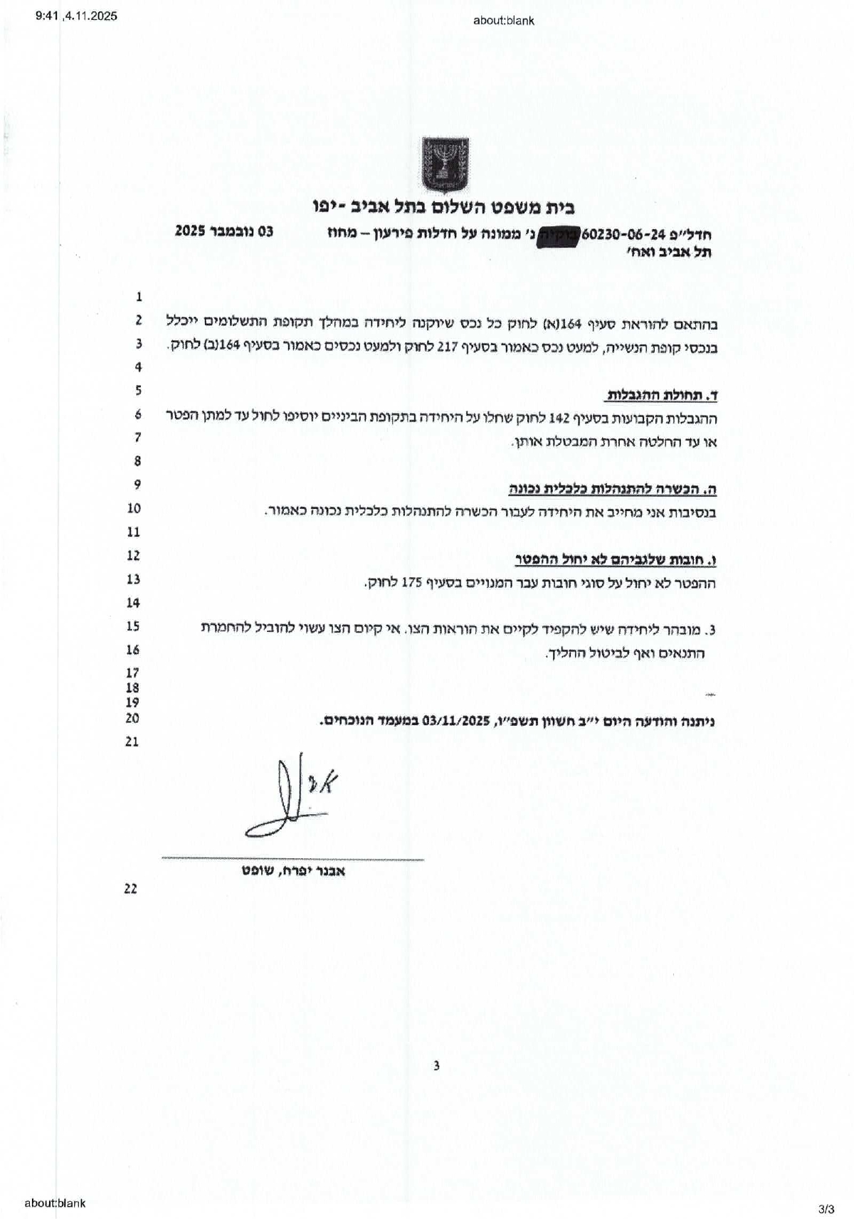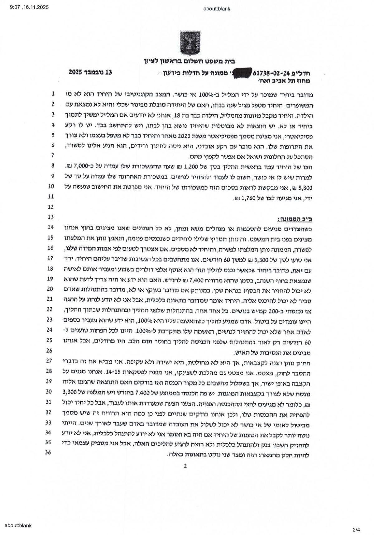 אז נכנסנו לפעולה. לקחנו את כל המספרים, הצגנו תמונה כנה של המצב הכלכלי, ובנינו תוכנית שבית המשפט יכול לאשר. הגשנו בקשה לצו שיקום כלכלי בבית המשפט בראשון לציון, עם הצעה הגיונית: 2,000 ש"ח למשך 36 חודשים בלבד.