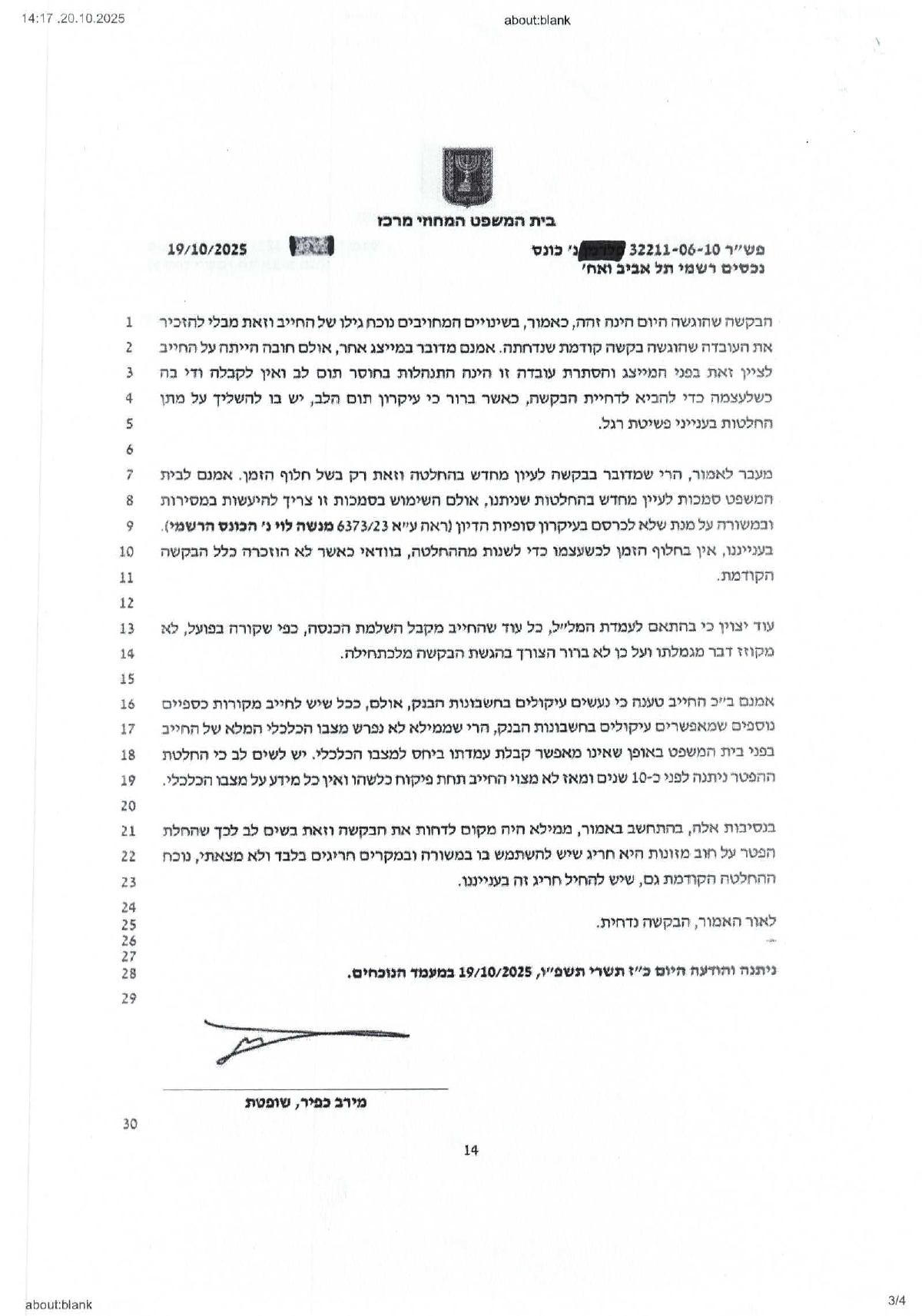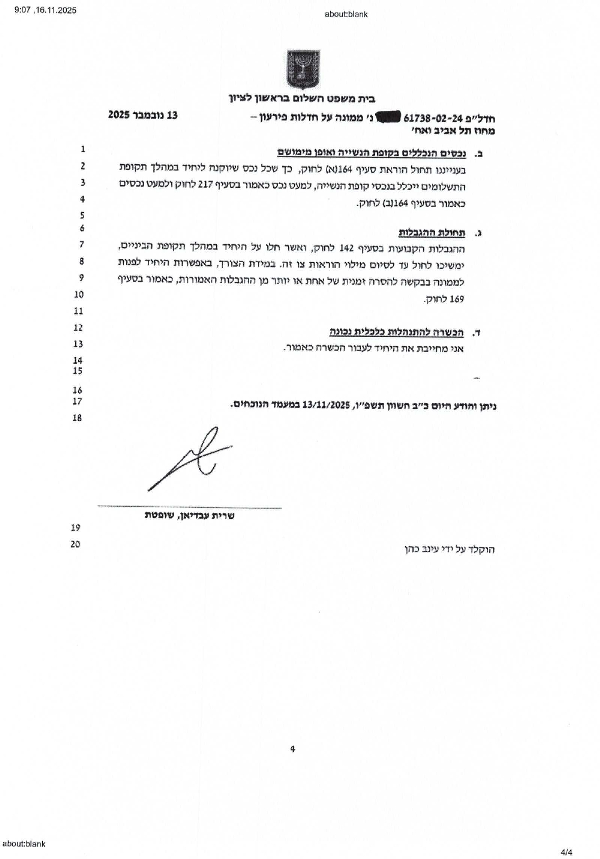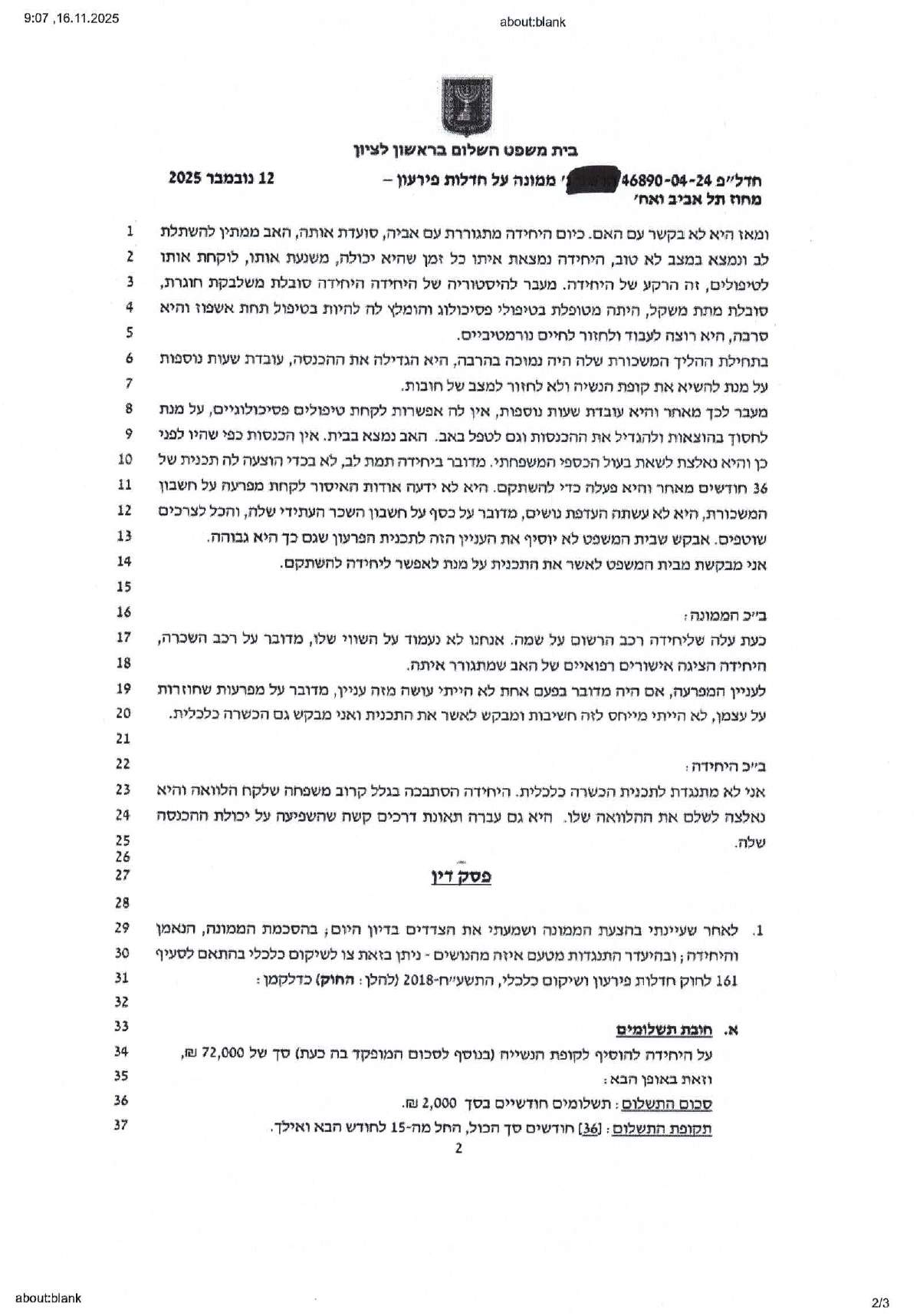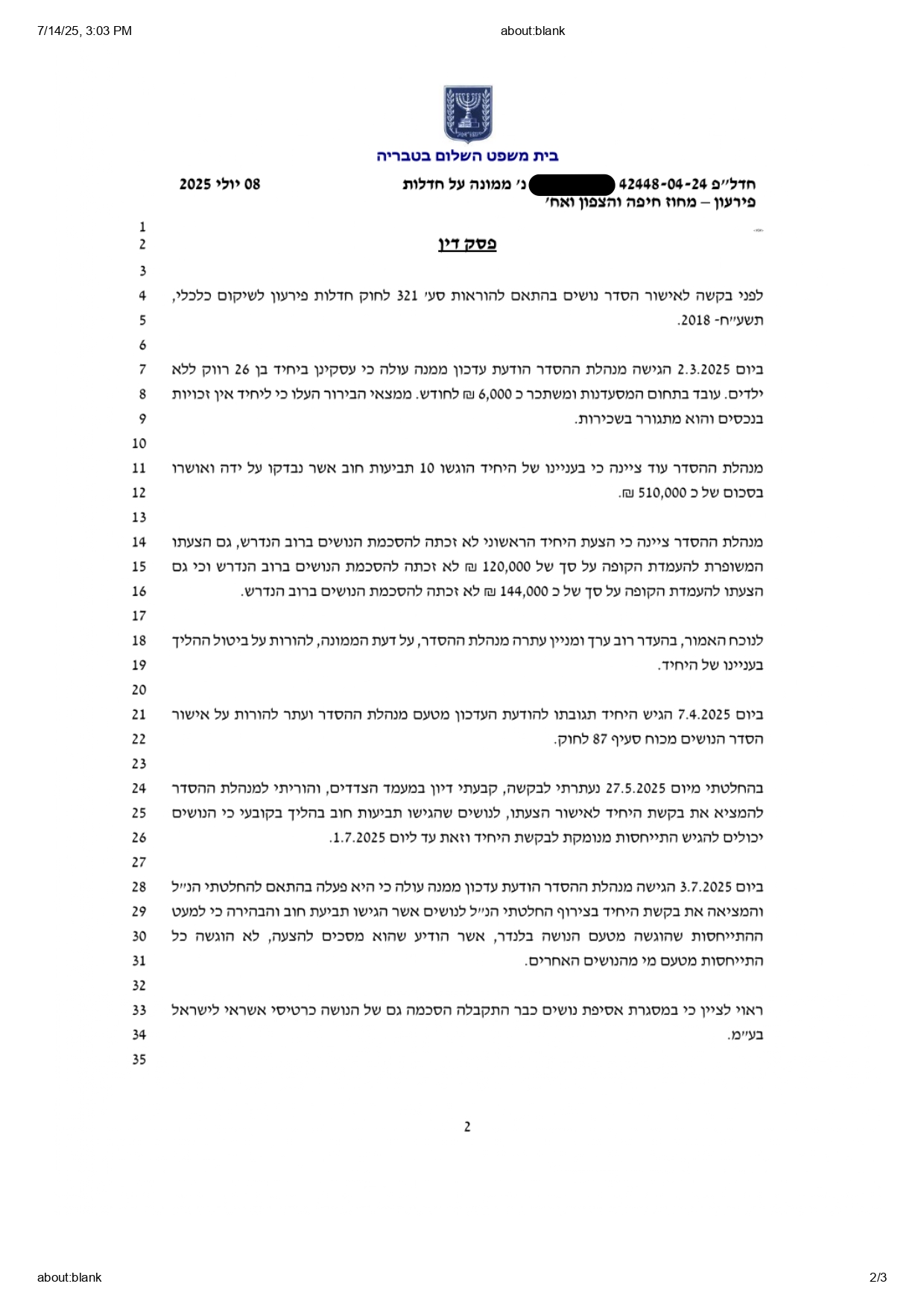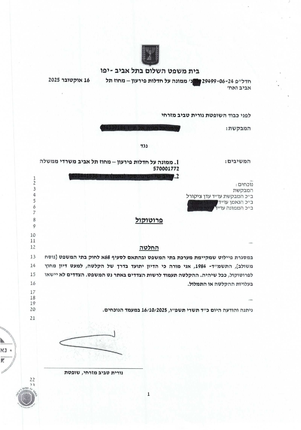 אז נכנסנו לפעולה. לקחנו את כל המספרים, הצגנו תמונה כנה של המצב הכלכלי, ובנינו תוכנית שבית המשפט יכול לאשר. הגשנו בקשה לצו שיקום כלכלי בבית המשפט בראשון לציון, עם הצעה הגיונית: 2,000 ש"ח למשך 36 חודשים בלבד.